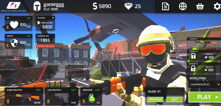 2、各种各样的武器可以轻松选择,AK,AWM等等知名枪械也可以轻松选择使用
