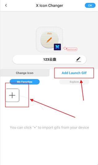 点击“Add Launch Gif ”,然后点击加号,新增GIF动图,在新应用图标启动时播放有趣的GIF动画。