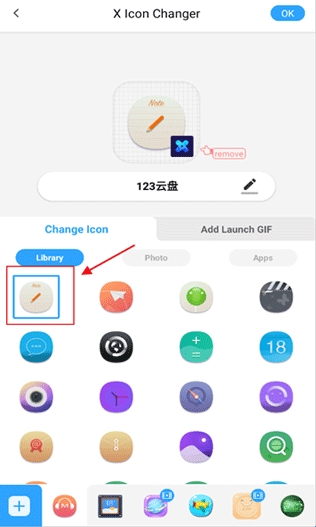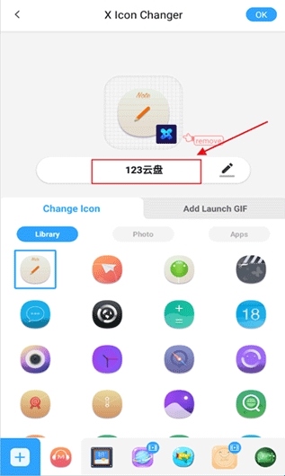 从内置图标包、您的图库、其他应用程序图标或个性化第三方图标包中选择一个新图标;