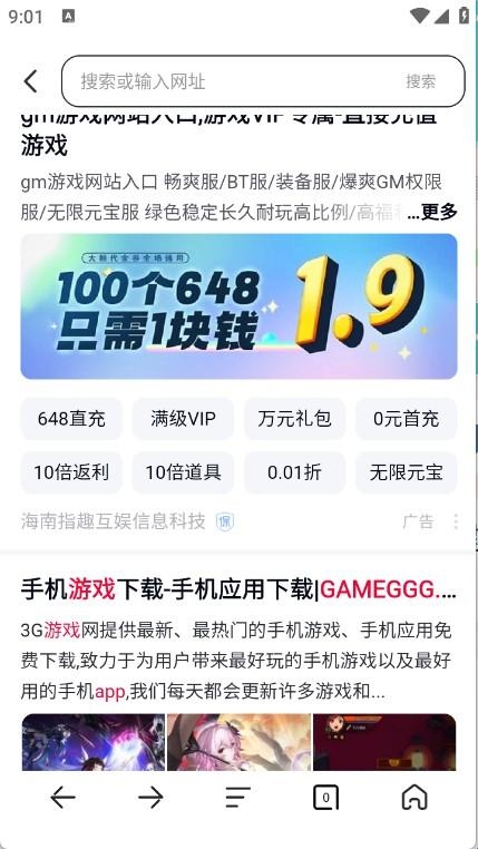 2、需要在首页输入框中输入关键词或者网址点击搜索。