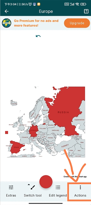 确保地图编辑完成后,点击app右下角“Actions”按钮。