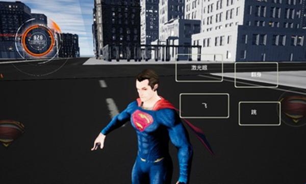 3、点击激光眼,可以控制超人发射激光破坏这个虚拟世界中建筑物;