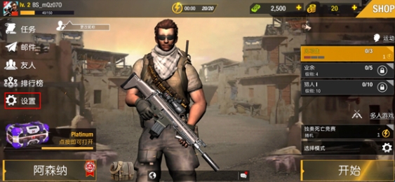 1、下载游戏进入到游戏大厅之后,点击左边栏目的设置;