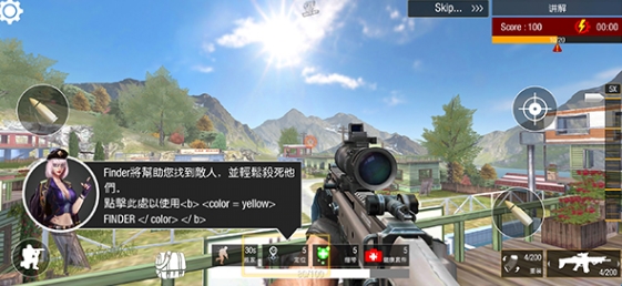2、狙击步枪是整个游戏的主要武器,副武器包括冲锋枪和手枪。