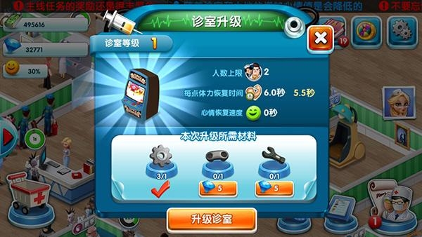 2、主题医院手机版每一个任务都需要对医生进行严格的考核,比如星级、等级、技能等等,并根据医生的个人能力来确定完成任务的几率和条件。