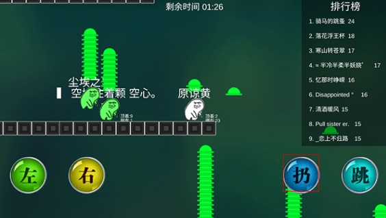 2、游戏的玩法就是操控表情包小人不停给大佬(对手)戴上绿帽子
