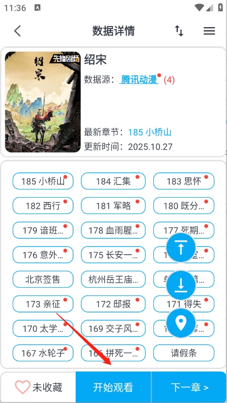 1、详情页可以切换漫画源、阅读最新章节、继续阅读等。