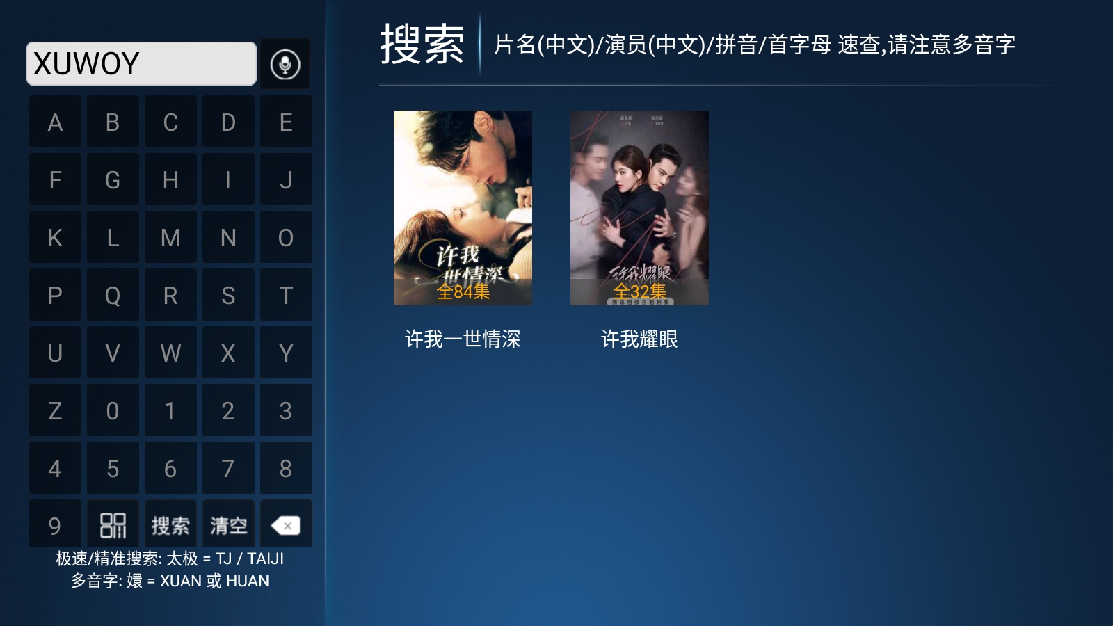 2、点击搜索,输入影视作品名字的关键词字母,然后就会出现相关资源点击进入。