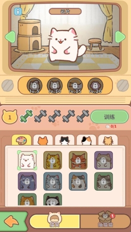 5、点击猫窝可以训练收集到的猫咪,提升等级后能为你提供更多增益效果。