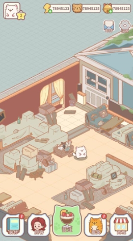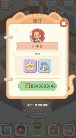 4、在主界面点击装修按钮,然后消耗一定数量的猫饼干可以更换餐厅里的装饰,你可以选择不同的蓝图来装修。