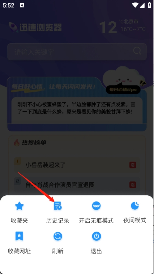 1.下载安装迅速浏览器app,之后打开,进入主页;