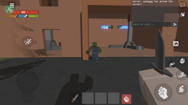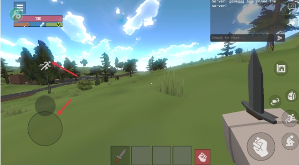 3、进入之后,和一般的沙盒游戏一样,通过摇杆控制移动,上方还有着快速奔跑的按钮。