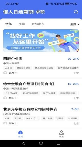 1.打开懒人日结兼职,在首页可以看到丰富的兼职信息,一键浏览。