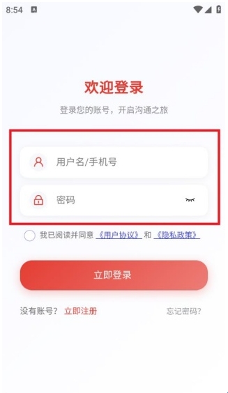 完成注册后,返回登录界面,完成登录,即可聊天。