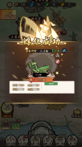 3、赢得比赛,就可以获得进化,螳螂羽化,就可以变成更高等级。