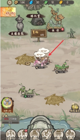 3、获得新的螳螂之后,我们前往关卡进行战斗,战斗前可以自由搭配自己的阵容。