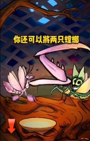 1、进入游戏后,首先通过繁育的方式来获得更多螳螂,拖动两只螳螂重合即可。