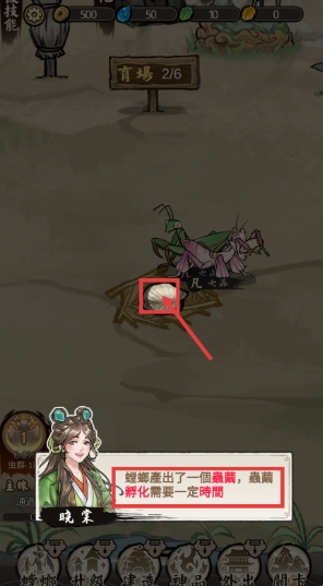 4、还可以将两只螳螂放在一起杂交繁育,点击【繁殖】,这样就可以获得高品级白龙螳了。
