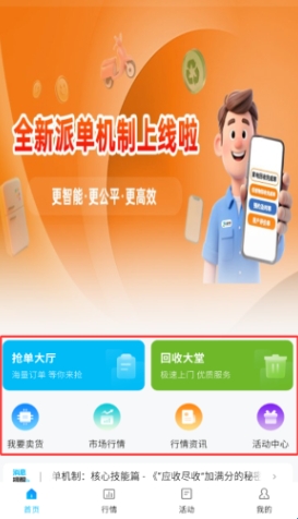 2、首页提供抢单大厅与回收大厅,支持快速接单或预约上门。
