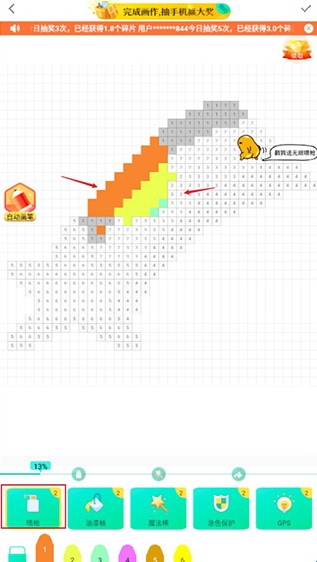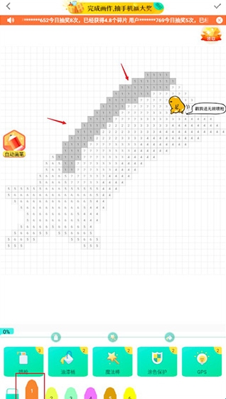 任意选择一副进行绘画,在下方选择你需要使用的绘笔颜色;