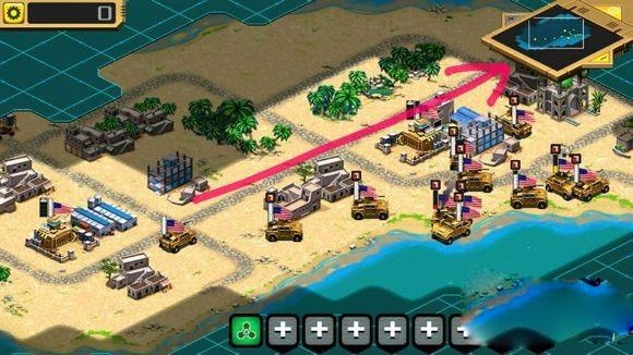 可见的陆军单位包括悍马(工程吉普车),坦克,大炮,机械(维修车),防空导弹车。海军则是炮舰(驱逐舰),巡洋舰,潜艇,运输船(空载航母),运输(运输艇)。空军则是战斗机,直升机,运输机。(不得不说部分翻译的名很奇葩,不过不影响游戏体验)