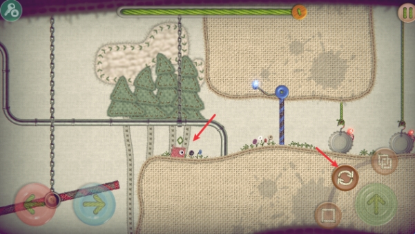 在一张画布上一个小布块的冒险故事,最开始一个红色小画布吃一个蓝色毛线球就能变成蓝色布块重量加一,在吃一块紫色毛线球就能变成紫色布块重量加一,一红就是这三种颜色,利用可以分解的玩法去触碰开关通过关卡的人玩法。