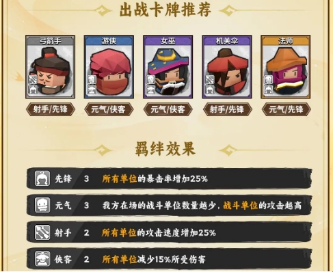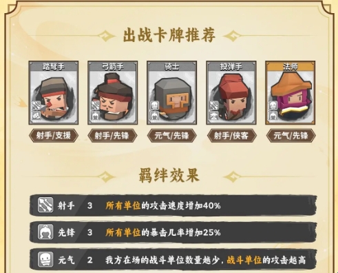 2、阵容推荐:踏弩手、弓箭手、骑士、投弹手、法师