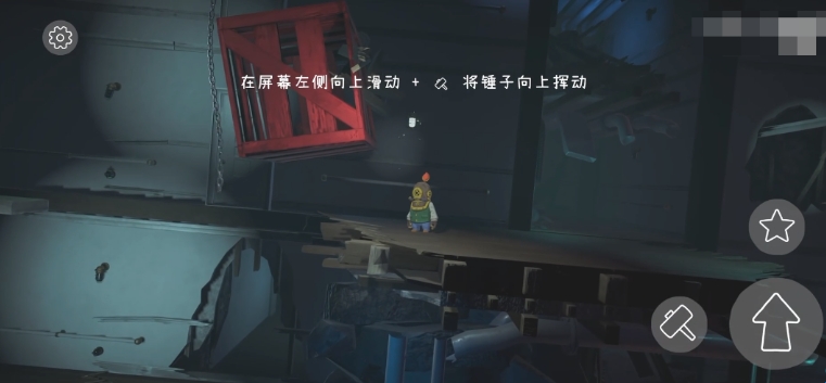 4、按照屏幕提示,上滑摇杆然后点击锤子,然后可以向上挥动锤子。