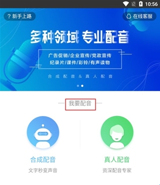 打开配音阁App,选择你是要【合成配音】还是【真人配音】。