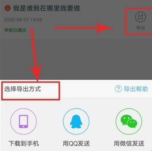 当通过审核后,就可以进行导出到【手机,QQ,微信,电脑或U盘】里都可以。