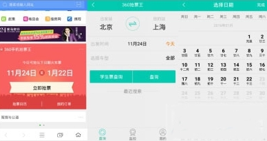 在360手机抢票王的入口下方还有抢票日历及我的订单等快速入口,通过抢票日历可以方便的查阅车票的开售日期,而在我的订单界面可以查询订单、设置购票人身份信息、资料等。