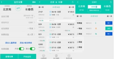 选好有意购买的车次之后,即可将该车次加入监控。在监控设置界面我们可以勾选优先车次、优先席别、添加乘车人身份信息及添加儿童乘客等设置,同时还可以选择声音及震动提醒,点击开始监控后360手机抢票王会为我们自动抢票。