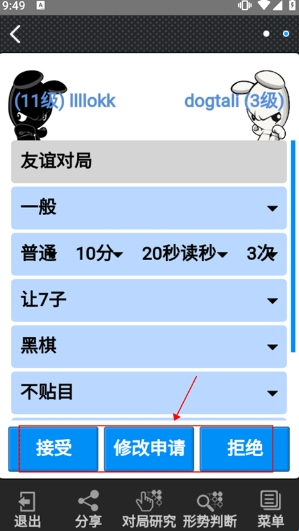 7、然后就轮到玩家选择,若同意点击接受即可,若不同意则点击拒绝或修改申请