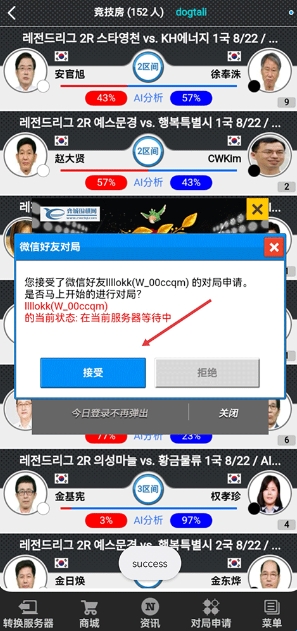 4、点击后会自动登录弈城围棋App,再点击接受按钮