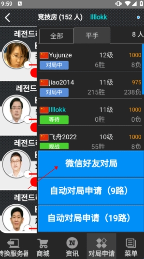 1、在App中打开对局申请界面,然后选择微信好友对局