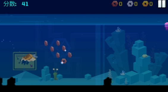6、水族馆大冒险:通过点击屏幕使角色下潜,控制高度躲避障碍水母。