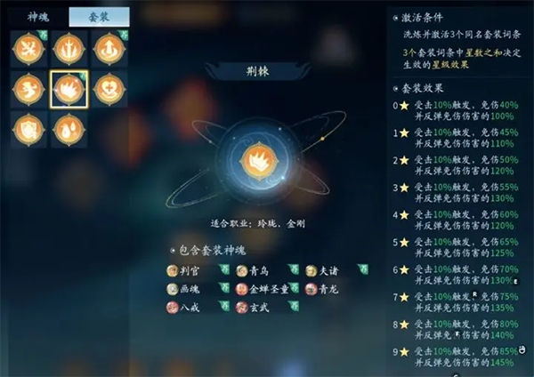 1、荆棘,作为金刚的专属神魂,搭配上自身的一个反伤效果,主打一个谁打自己就扎谁。如果有更高的追求,可以带三个盾的宝宝。可对敌人造成心理伤害,从此过上缺德人生,加上职业的特性,血量越低伤害越高,起手先让对手半血。在开启三盾。这个神魂只适用金刚,其他职业是没用太大用处的,不推荐其他职业使用