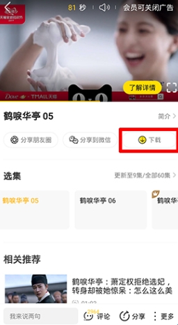 步骤二:之后在播放页面里点击【下载】按钮,选择好自己想要的清晰度。