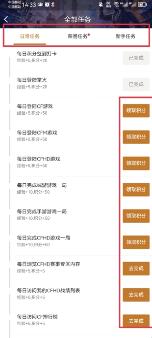 点击进入后会有各种获取积分的任务,完成指定任务后即可获取相应的积分