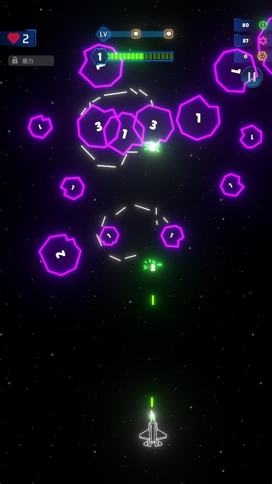 1、视觉风格采用霓虹色彩渲染宇宙场景,光影效果绚丽夺目,营造梦幻般的飞行体验,增强游戏吸引力。