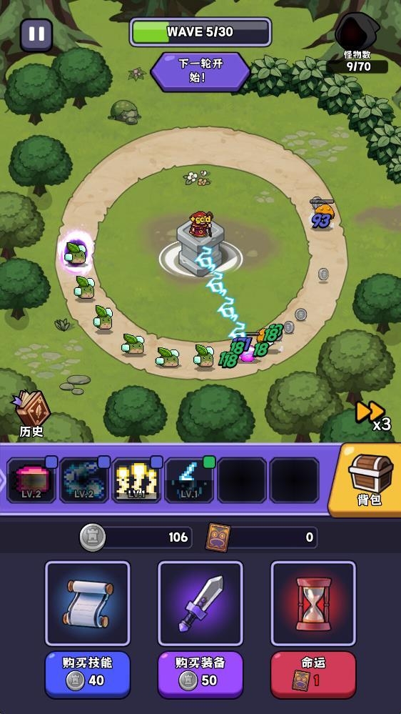 2、进入关卡后角色会自动攻击敌人,击败敌人可以获得银币。