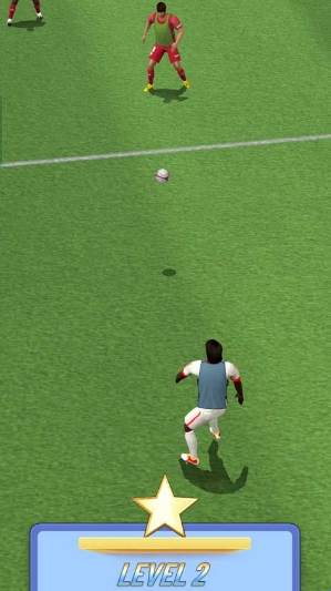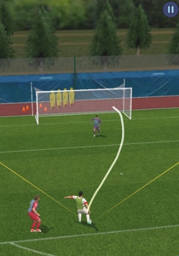 2、进入关卡后滑动屏幕可以画出球员踢球的路径,松开手指球员就会将球踢到指定位置。