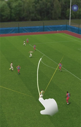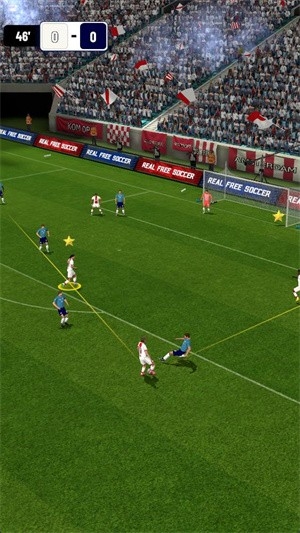 直观简单的从足球所在位置滑动手指去传球、射门,或者划出弧线打出精彩的弧线球越过对方球员的防守。