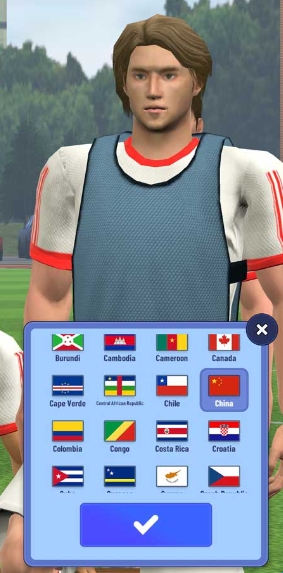 3、下面就是选择运动员所在的国家,选择好后点击下方对钩表示确定。