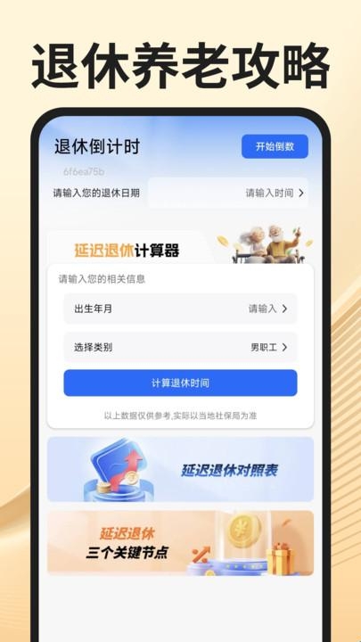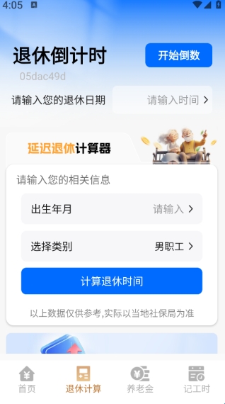 进入退休计算页面,按照提示输入信息进行退休倒计时计算。
