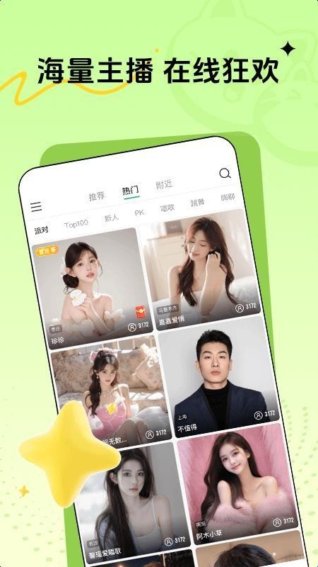 1.提供全天候在线的真人视频直播服务,用户可通过观看直播与主播进行实时互动,涵盖才艺展示、歌舞表演等多种内容形式。