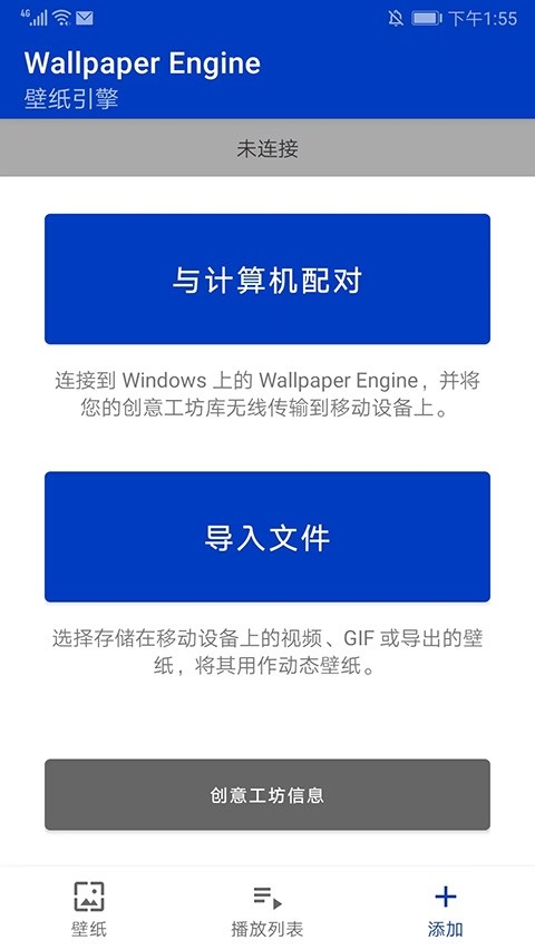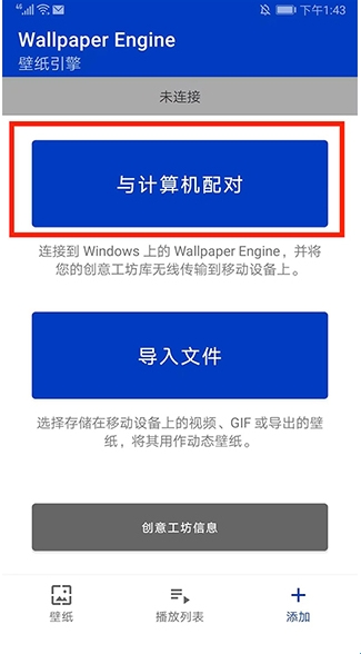2、连接到 Windows上的 Wallpaper Engine,以将桌面库传输到手机上。