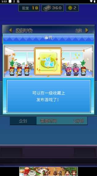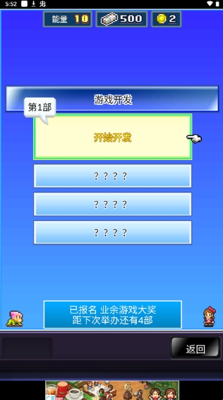 对话结束后,玩家需要开始计划开发游戏,我们点击开发;