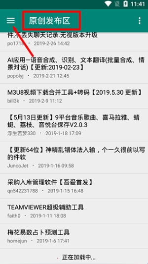 1、在本站下载安装吾爱破解,运行软件,可以看到有原创发布区,如果想看别的板块,点击左上角“三”,就能切换到别的板块;
