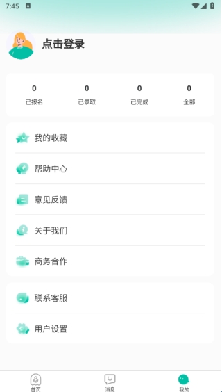 在我的页面中可以了解已报名、已录取、已完成等不同版块的内容。